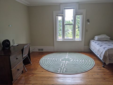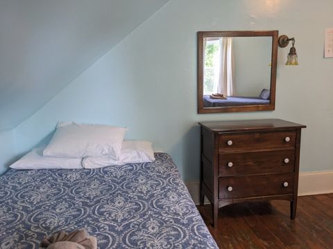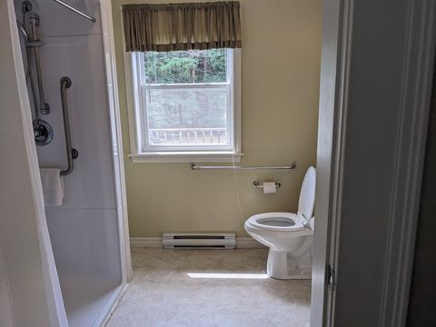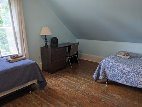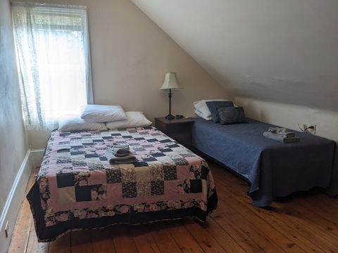 Stevens House offers lodging for up to 9 guests. The main floor has a kitchen, dining room, living room and bathroom on the ground level as well as one wheelchair accessible bedroom with a king-sized bed and an en-suite wheelchair accessible bathroom. Upstairs is a common room with a couch & bed, 3 bedrooms, each with a 2 single beds, and a full bath.
